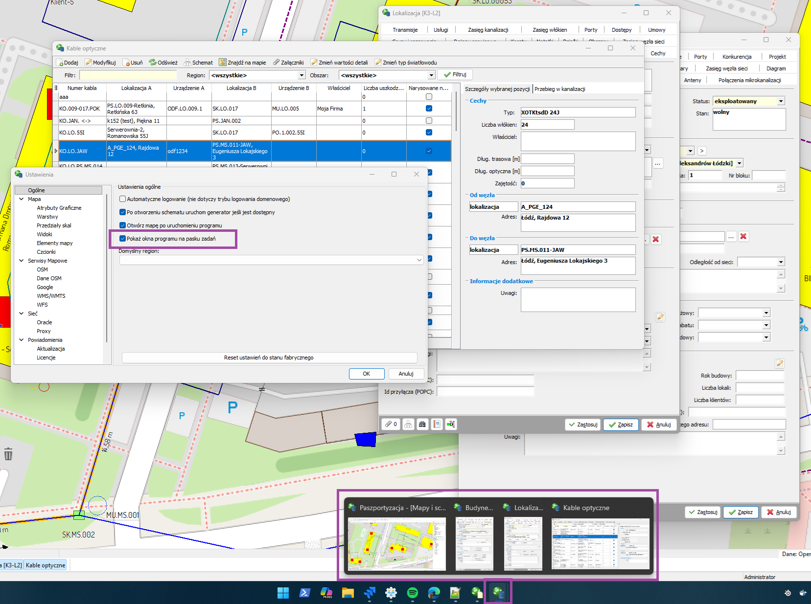 Dodana nowa opcja "Pokaż okna programu na pasku zadań" w ustawieniach w sekcji Ogólne, odpowiedzialna za wyświetlanie osobno okien paszportów i kartotek na pasku systemu Windows