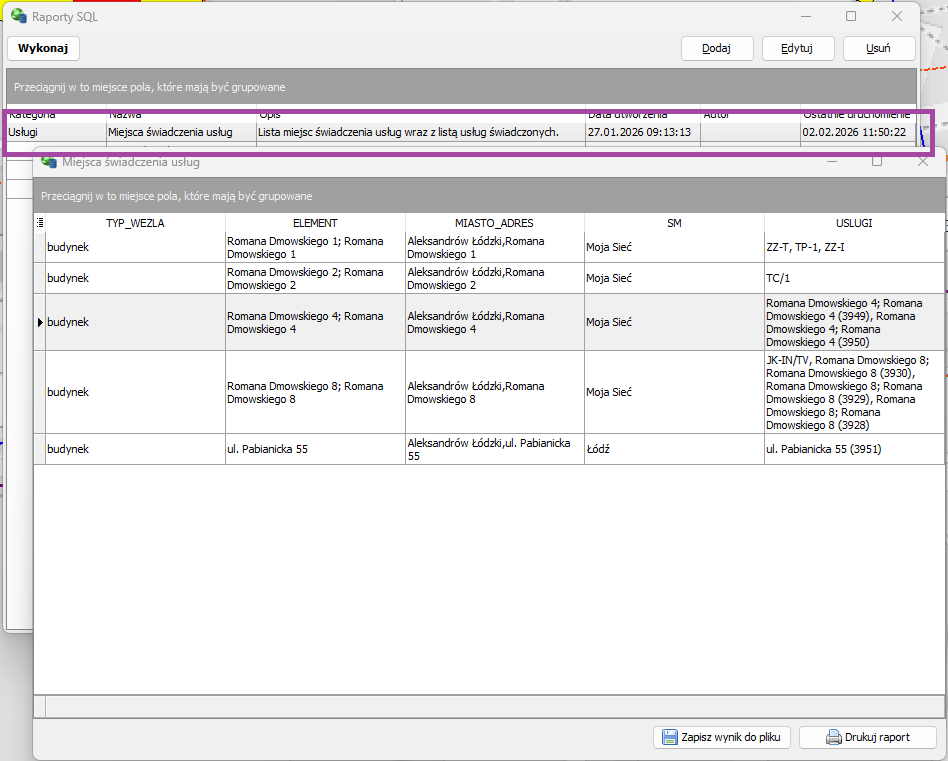 W raportach SQL pojawił się nowy raport tabelaryczny z wykazem miejsc świadczenia usług